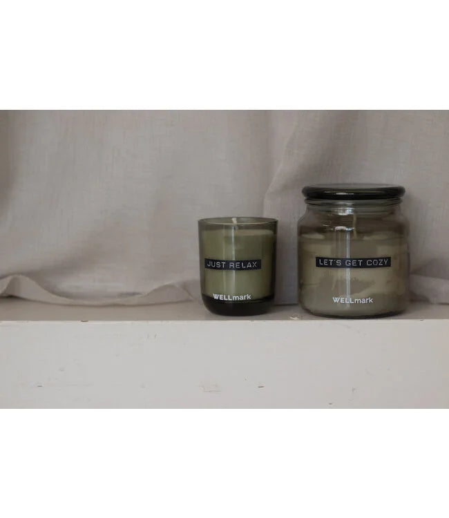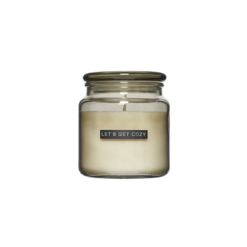 Geniet van een warme en kruidige geur in je interieur met de grote geurkaars Dark Amber. De kaars is omhuld door een glazen pot van gerecycled glas met de quote 'Let's get cozy' en gemaakt van 100& koolzaadwas. Het stijlvolle smokey black glas geeft een luxe uitstraling en past perfect bij de andere producten uit de geurlijn Dark Amber. De geurkaars is gemaakt op basis van koolzaadwas.